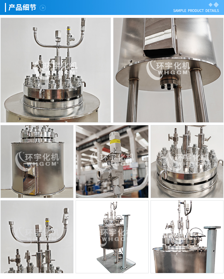 常規(guī)釜蓋開口 氣相口配針形閥,液相口配針形閥及釜內(nèi)插底管,固體加料口配絲堵,測控溫口配鉑電阻,壓力表安全爆破口配壓力表及安全防爆裝置,釜內(nèi)冷卻盤管進、出口配水咀