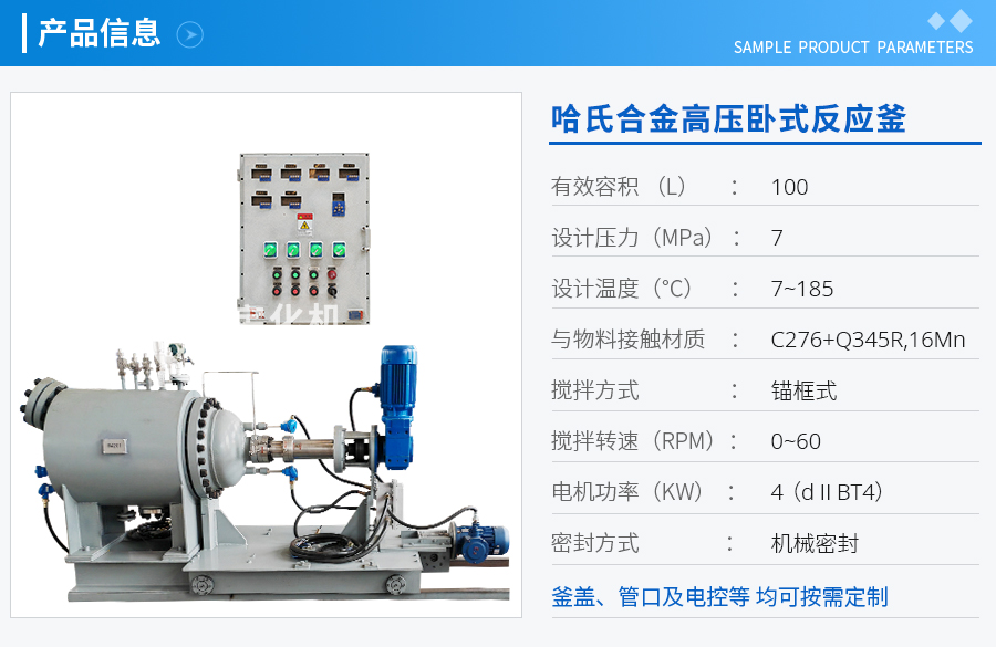 名稱:上海100L哈氏合金高壓臥式反應(yīng)釜