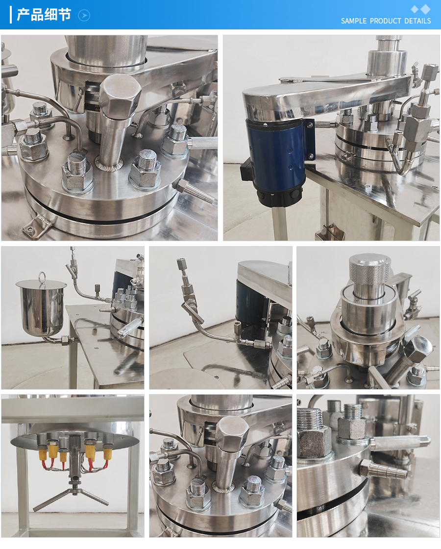 其他附件 如果用戶在釜蓋、釜體開口、內(nèi)部結(jié)構(gòu)、壓力高低、攪拌槳葉、及增加其他輔助裝置(如冷凝回流裝置、冷凝器、恒壓加料罐、接收裝置)等有特殊要求,可完全按用戶的要求加工制造