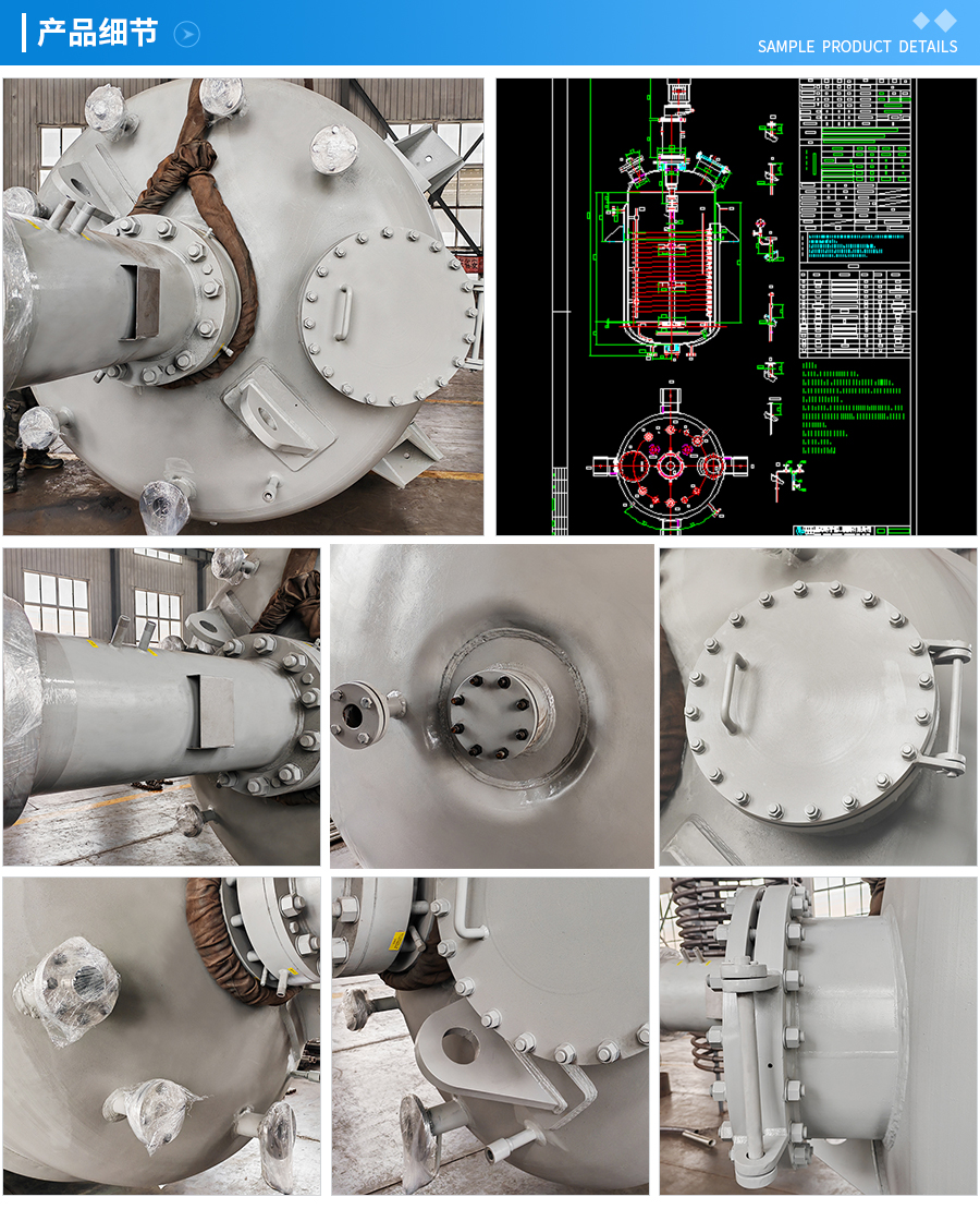主要材料 釜體材料主要采用不銹鋼與碳鋼復(fù)合材質(zhì) S30408(304)+Q345R、S31603(316L) +Q345R、S32168(321)+Q345R, 也可是純不銹鋼材質(zhì),并可根據(jù)不同介質(zhì)要求制作鈦材、鎳材、鋯材、哈氏合金、蒙耐爾合金等復(fù)合材質(zhì)反應(yīng)釜,也可根據(jù)客戶要求主要材料噴涂四氟PTFE/PPL。